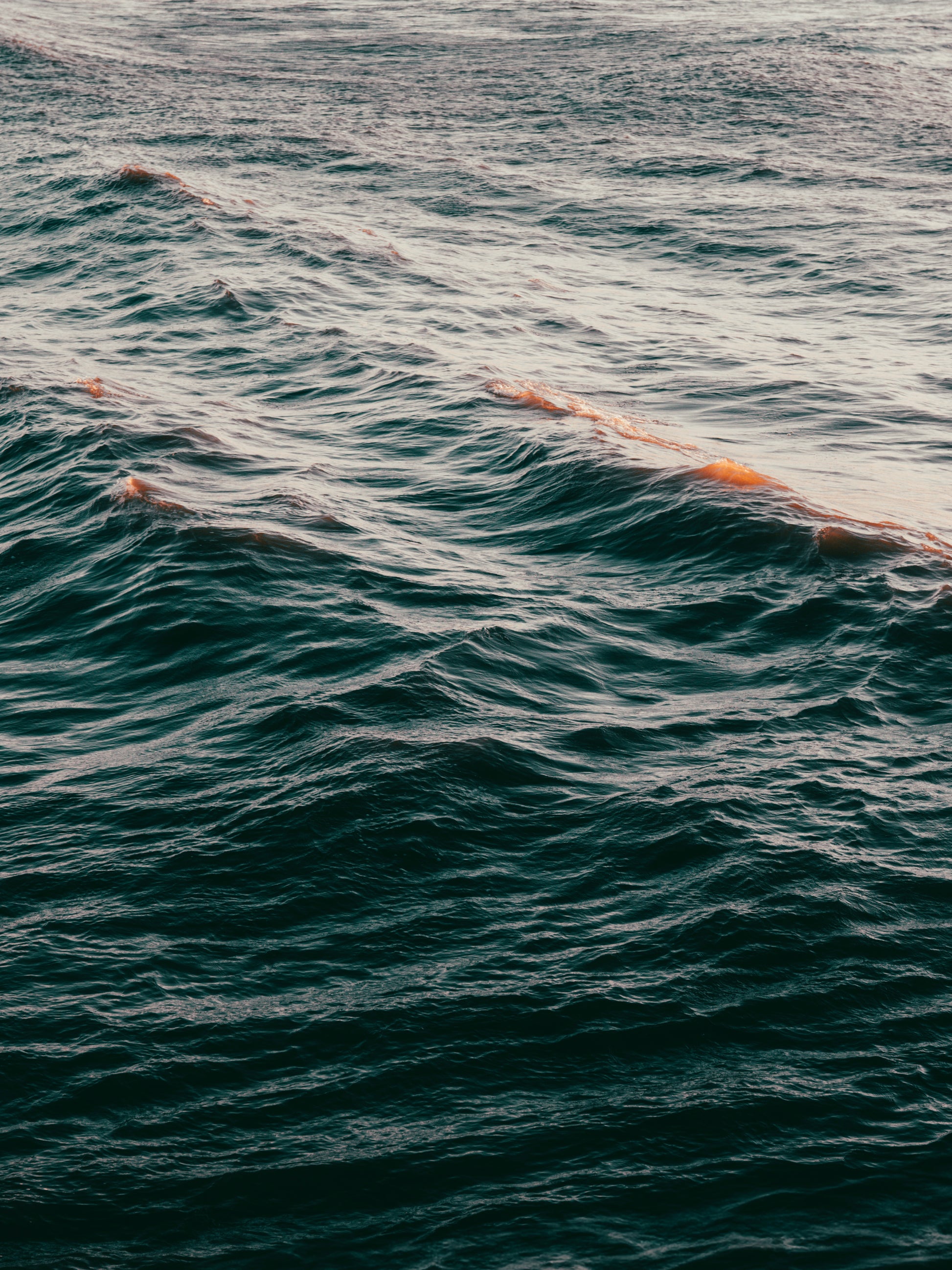 Het Noordzeeoppervlak in zacht avondlicht. De beweging van het water heeft een aantrekkelijk effect, het verveelt nooit.